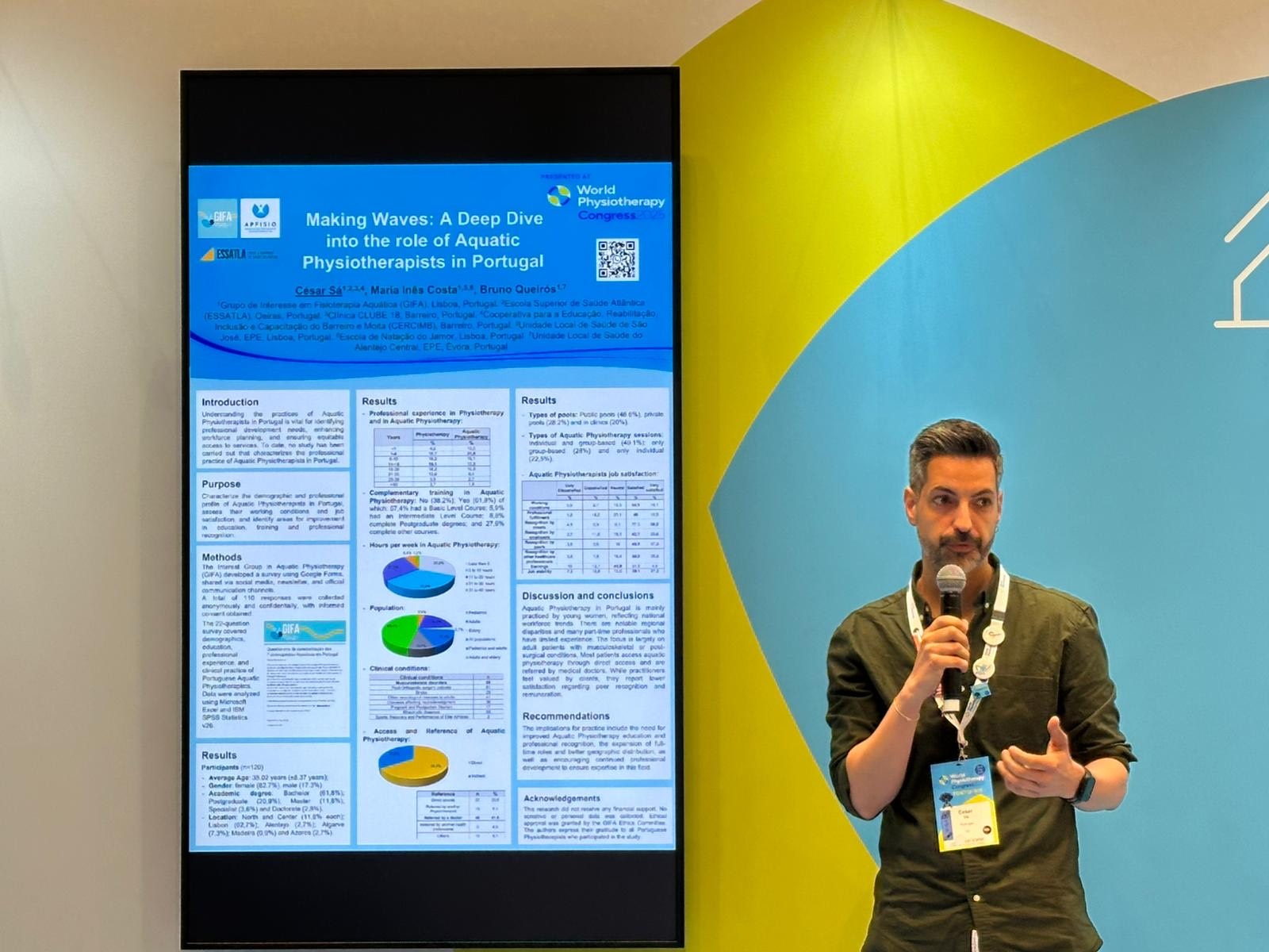 O Fisioterapeuta César Sá foi também o moderador da networking session da fisioterapia aquática neste congresso, bem como esteve presente no painel de experts do Clinical Seminar sobre a efetividade da fisioterapia aquática a nível mundial.