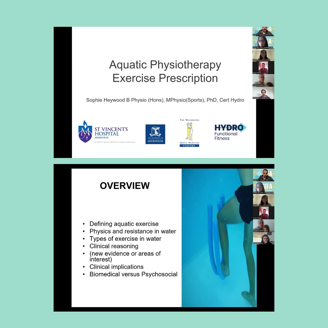No passado dia 14 de Dezembro realizou-se o webinar “Prescrição de Exercício em Fisioterapia Aquática”, que teve como oradora a Fisioterapeuta Sophie Heywood da Austrália, que tem uma vasta experiência nesta área.