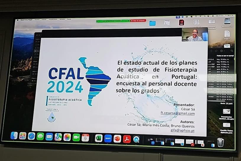 Decorreu de 6 a 10 de Novembro o 1er Congreso Internacional de Fisioterapia Acuática LatinoAmericano (CFAL2024) em Santiago (Chile), tendo a direção do GIFA submetido 2 abstracts que foram aceites para comunicação oral, e através do consultor do GIFA o Fisioterapeuta César Sá, foram apresentados esses 2 trabalhos científicos, um sobre a caracterização da parte académica da Fisioterapia Aquática em Portugal, e outro sobre a caracterização profissional dos fisioterapeutas aquáticos em Portugal. E foi com grande orgulho que recebemos o prémio de investigação de excelência pelo trabalho com o título “Making Waves: Una innersión profunda en el papel de los Fisioterapeutas acuáticos en Portugal”, cujos autores foram os colegas Maria Inês Costa, César Sá e Bruno Queirós. Parabéns! 👏🎉